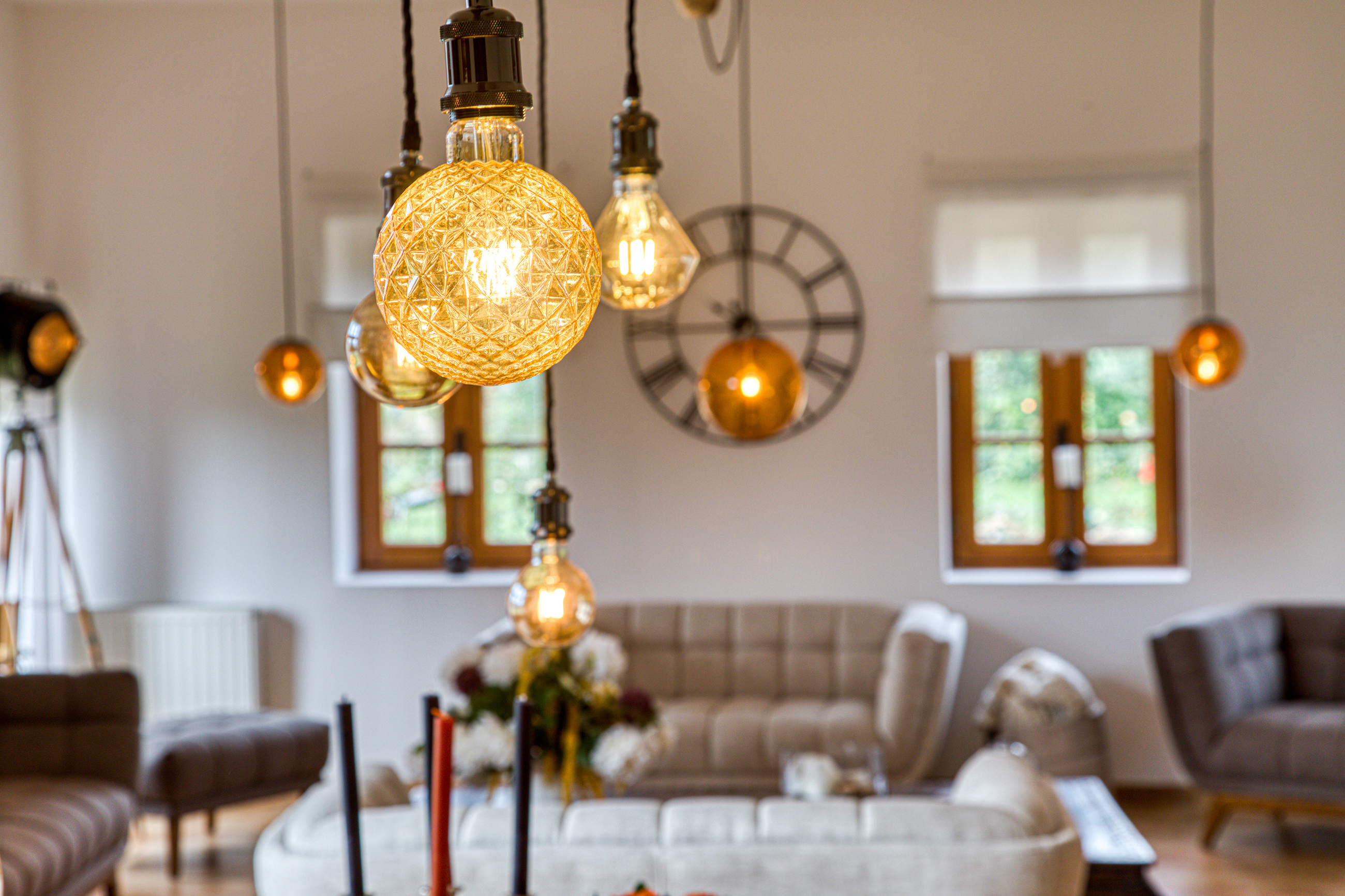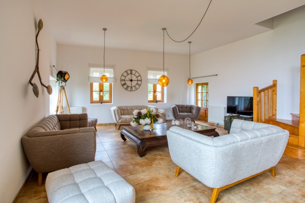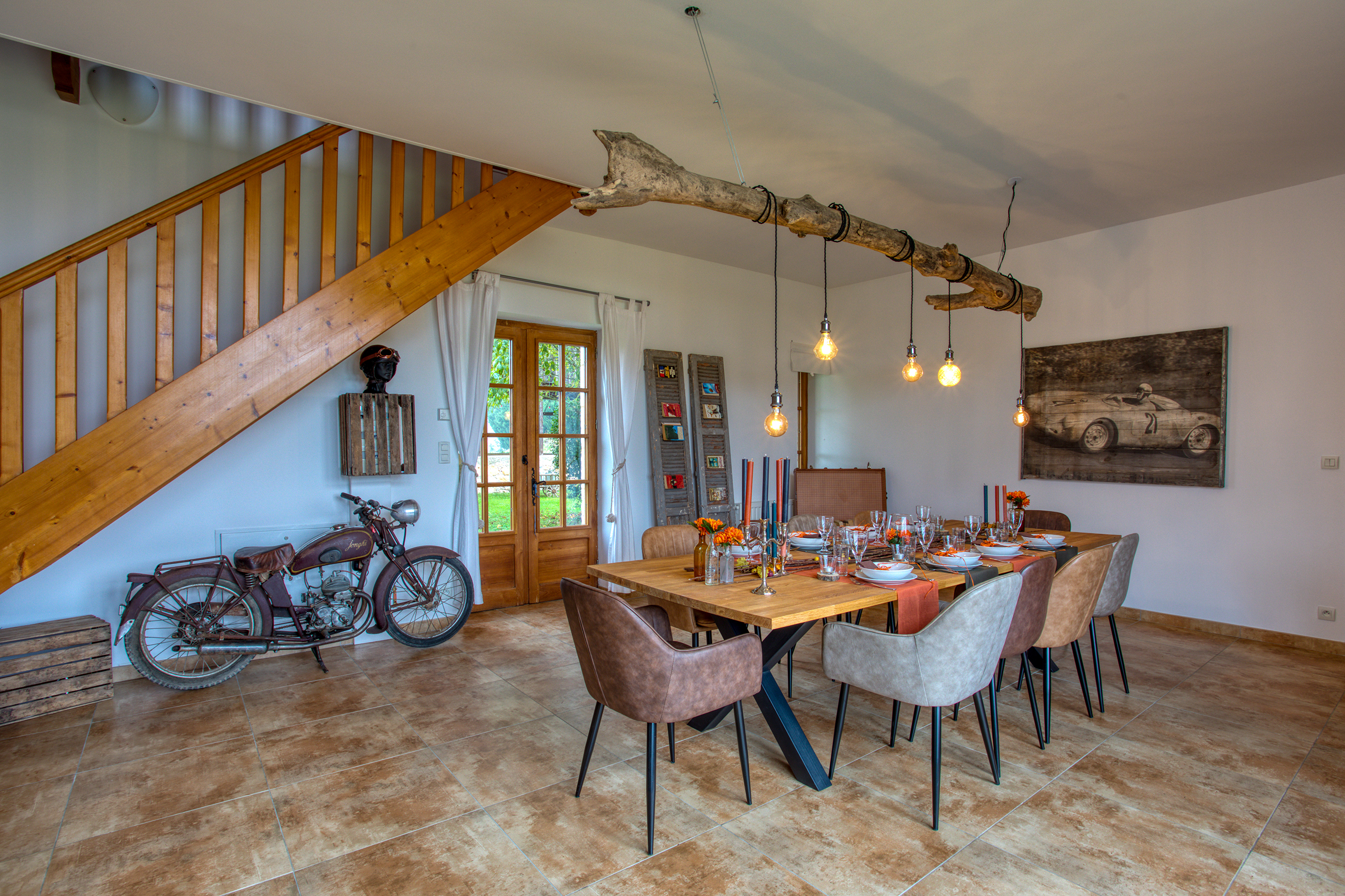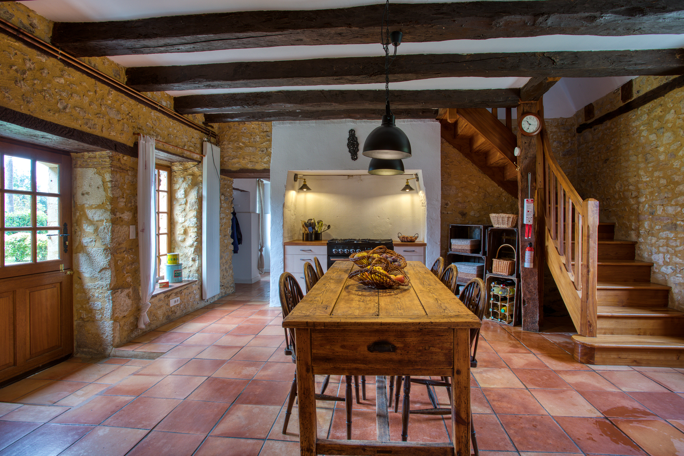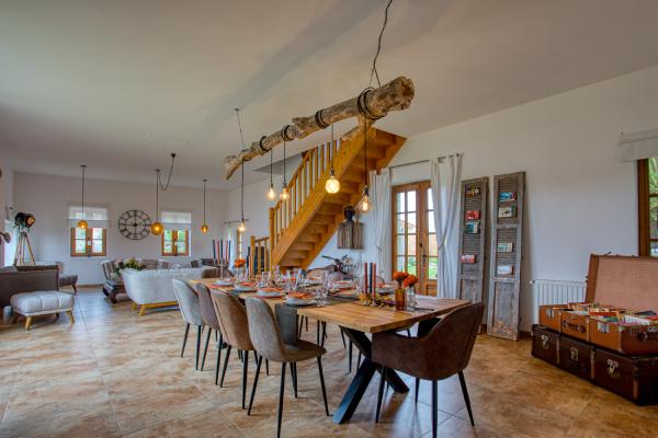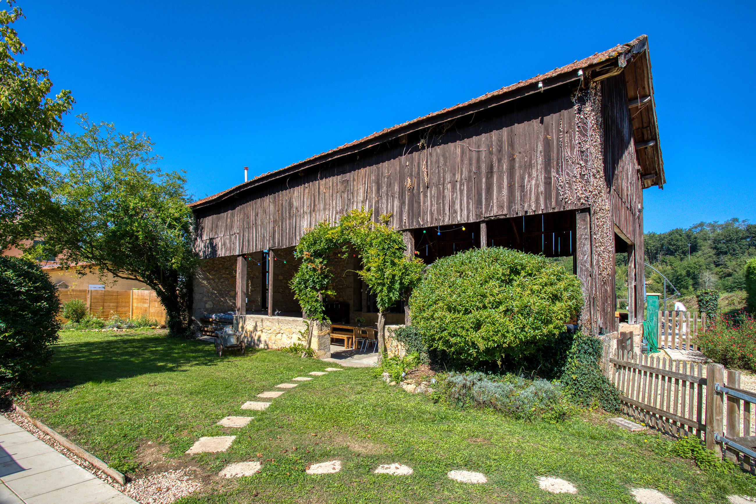 Ancien séchoir à tabac reconverti en espace salon et salle à manger ;